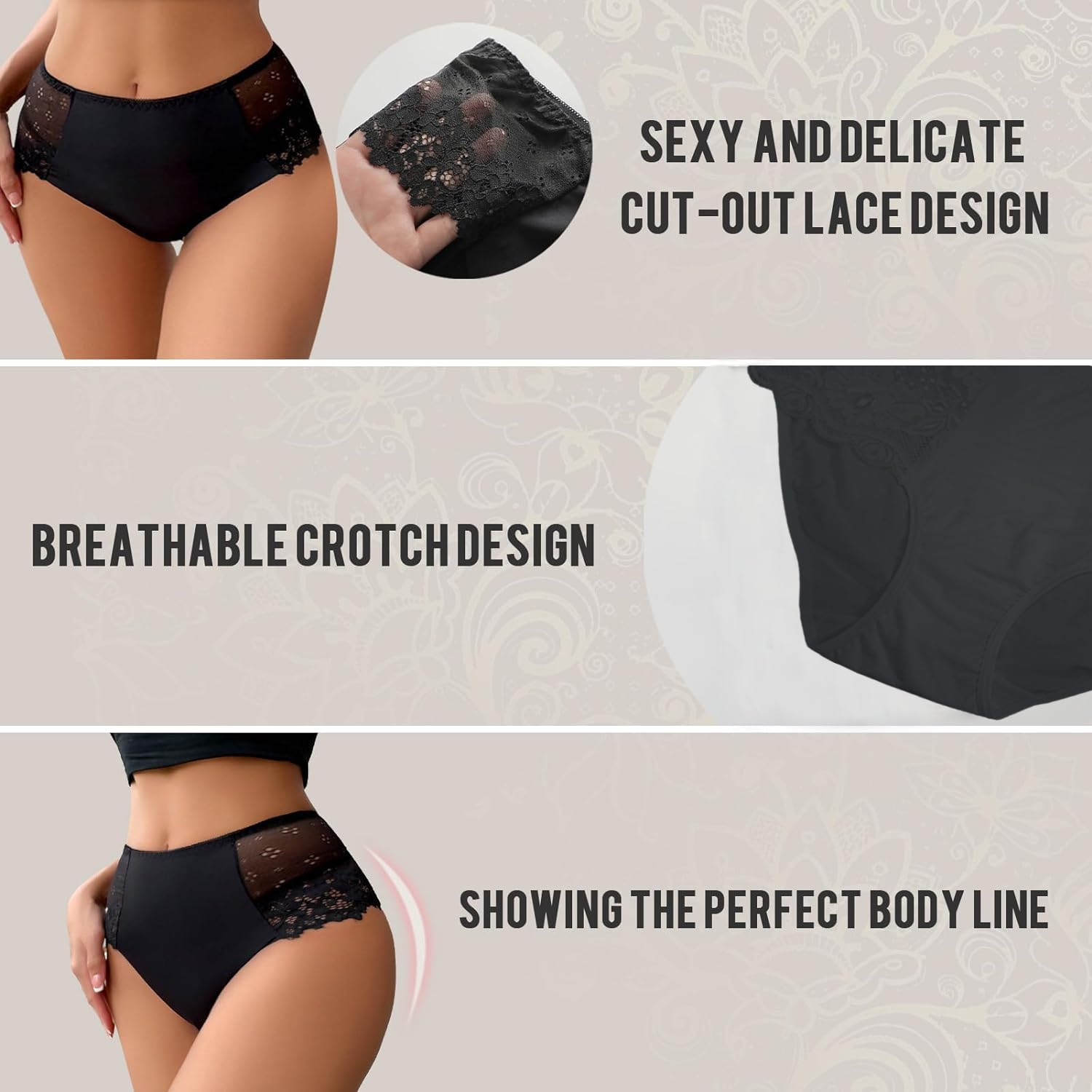 Nicsy Side lace panty for women:- lace bikini underwear for women feature a low-rise waistline that sits comfortably on your hips, creating a flattering and feminine silhouette. Soft & Stretchable fabric gives a close and comfortable fit. Nicsy underwear for women are versatile and can be worn with a variety of outfits, ladies underwear from jeans and skirts to dresses and workout wear. lace underwear for women cotton Comfortable Waistband: panties for women,the elastic waistband of Nicsy lace panties is designed to provide a secure and comfortable fit without digging into your skin.panties for women combo pack, Material composition:Viscose Cotton Lycra, Style Name: Women Panties, bikini, Hipster, Boxer, Brief, Underwear
