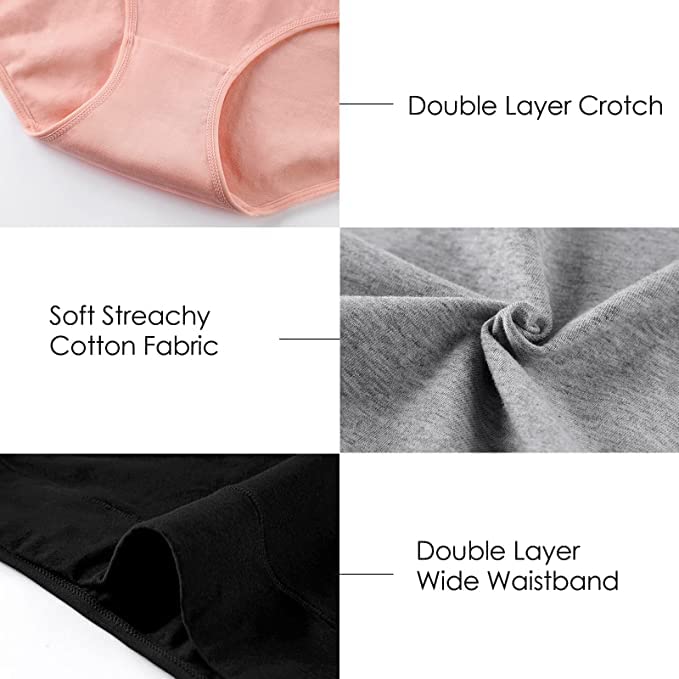 Double-Layer crotch for added protection, sweat wicking, breathable & healthy.Long and wide enough for padsCotton underwear gives comfortable feeling to your skin.